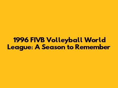 1996 FIVB Volleyball World League: A Look Back At The Epic Season