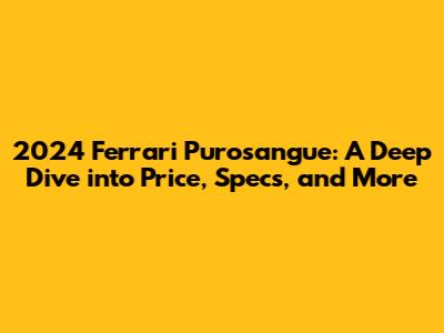 Alright, gearheads and luxury car enthusiasts, let's talk about the 2024 Ferrari Purosangue! This isn't just any car; it's Ferrari's bold move into the SUV market, and it's making waves. This article will be your ultimate guide to everything Purosangue – from its price tag to its roaring V12 engine, and all the juicy details in between. Get ready to dive deep, because we're about to explore what makes this a unique machine on four wheels. Buckle up, it's going to be a fun ride!