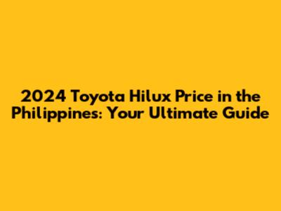 2024 Toyota Hilux Price In The Philippines: A Comprehensive Guide