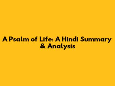 A Psalm Of Life: A Hindi Summary & Analysis
