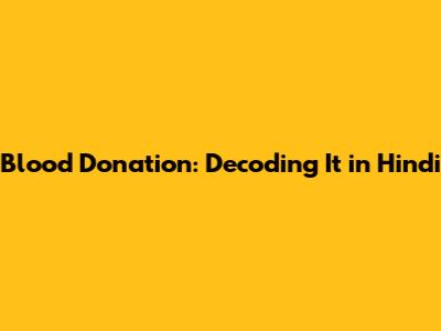 Blood Donation: Understanding In Hindi