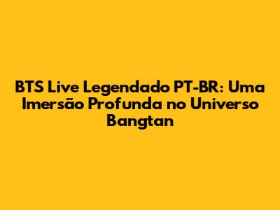 BTS Live Legendado PT-BR: A Jornada Épica Do Bangtan