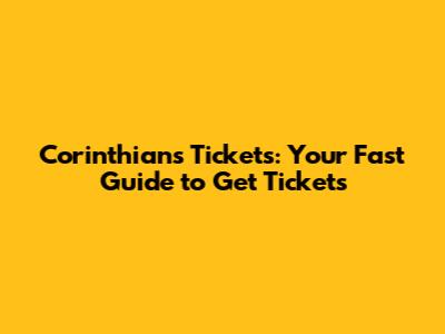Corinthians Tickets: Your Fast Guide To Get Tickets