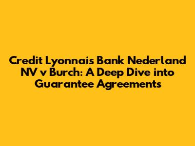 Hey guys! Ever found yourself scratching your head over guarantee agreements and wondering what happens when things go south? Well, let’s break down a landmark case that sheds light on the complexities of these agreements: Credit Lyonnais Bank Nederland NV v Burch. This case is a real eye-opener, especially if you're diving into the world of contract law or just trying to understand the fine print when someone asks you to guarantee their debt.