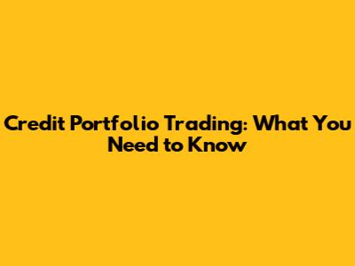 Credit Portfolio Trading: What You Need To Know