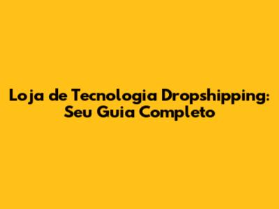 Crie Sua Loja De Dropshipping De Tecnologia: Guia Completo