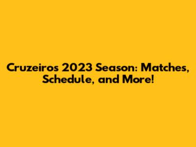 Cruzeiro's 2023 Season: Matches, Schedule, And More!