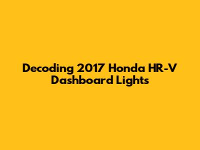Decoding 2017 Honda HR-V Dashboard Lights