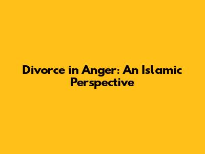 Divorce In Anger: An Islamic Perspective