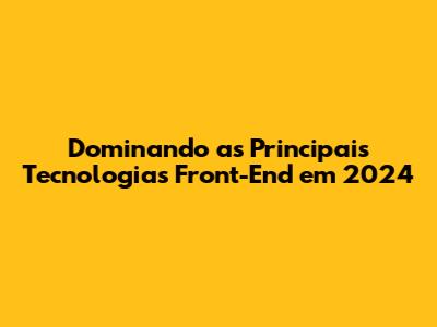Dominando As Principais Tecnologias Front-End Em 2024