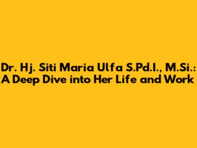 In conclusion, Dr. Hj. Siti Maria Ulfa is a truly remarkable individual whose life and career are defined by a relentless pursuit of knowledge, a deep commitment to service, and a remarkable record of achievement. Her journey, from her early education to her current standing as a respected professional, is a testament to her hard work, dedication, and unwavering commitment to excellence. She has made significant contributions to her field through her research, teaching, and service, leaving a lasting impact on the lives of those she has touched. Her story serves as an inspiration to others, demonstrating that with passion, perseverance, and a commitment to making a positive difference, one can achieve great things. She embodies the values of integrity, leadership, and service, and her work reflects her deep commitment to these principles. Her legacy will continue to inspire and motivate future generations to pursue their dreams and make a meaningful contribution to the world. As she continues her journey, we can expect to see even greater achievements and contributions from this exceptional individual. Her dedication to lifelong learning and her unwavering commitment to excellence will undoubtedly propel her to even greater heights, further solidifying her place as a leader and a role model in her field. Dr. Hj. Siti Maria Ulfa's story is a powerful reminder that with hard work, dedication, and a commitment to making a positive difference, one can achieve remarkable success and leave a lasting legacy. She is a true inspiration to us all.