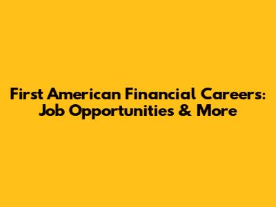 First American Financial Careers: Job Opportunities & More