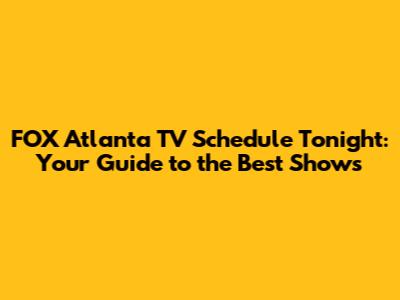 Hey there, TV lovers! Are you trying to figure out what's on FOX Atlanta tonight? You've come to the right place! We're diving deep into the FOX Atlanta TV schedule tonight, helping you navigate through your favorite shows, movies, and all the exciting programming the network has to offer. So, grab your snacks, get comfy on the couch, and let's explore what's in store for you tonight! This article is designed to be your go-to guide, so you won't miss a single moment of your must-watch shows. We will ensure that you are fully equipped with all the information you need to have a fantastic night of TV viewing. Let's get started, guys!