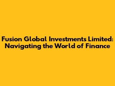 Hey everyone, let's dive into the world of Fusion Global Investments Limited! This is a fascinating area, right? The company is a key player in the financial arena, offering a wide array of services designed to help you, me, and everyone else navigate the complexities of global markets. We're going to break down everything from investment strategies to how they manage risk, so you can have a better understanding of what they do and how they might be a fit for your financial goals. Get ready for a deep dive; it's going to be an exciting ride!