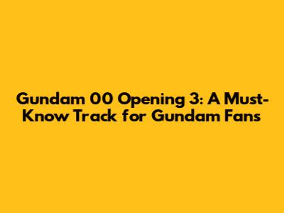 Gundam 00 Op 3: A Must-Know Track For Gundam Fans