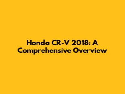 Honda CR-V 2018: A Comprehensive Overview