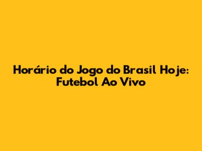Horário Do Jogo Do Brasil Hoje: Futebol Ao Vivo