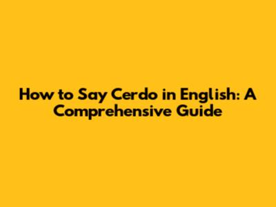 How To Say Cerdo In English: A Comprehensive Guide