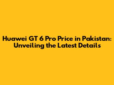 Huawei GT 6 Pro Price In Pakistan: Latest Updates