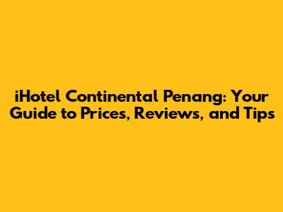 Hey guys! Planning a trip to Penang and eyeing the iHotel Continental? Awesome choice! It's a popular spot, and for good reason. But before you book, let's dive into everything you need to know about iHotel Continental Penang prices, reviews, and some insider tips to make your stay fantastic. I'll break down the pricing, what you can expect, and how to snag the best deals. Ready? Let's go!