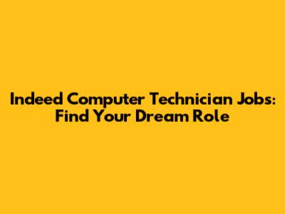 Indeed Computer Technician Jobs: Find Your Dream Role