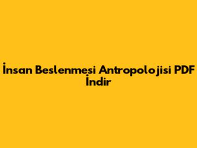 İnsan Beslenmesi Antropolojisi PDF İndir