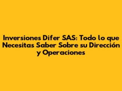 Inversiones Difer SAS: Dirección, Operaciones Y Todo Lo Que Necesitas Saber