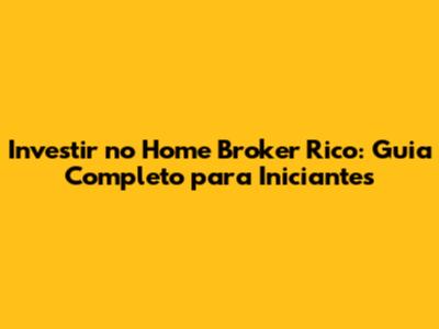 Investir No Home Broker Rico: Guia Completo Para Iniciantes