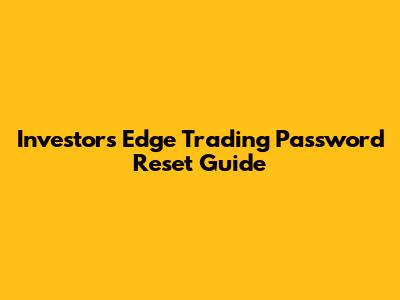 Investor's Edge Trading Password Reset Guide