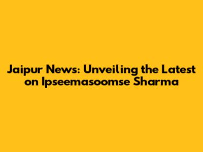 Jaipur News: Updates On Ipseemasoomse Sharma