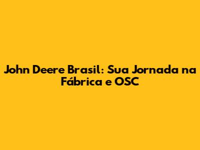 John Deere Brasil: Tudo Sobre A Fábrica E OSC