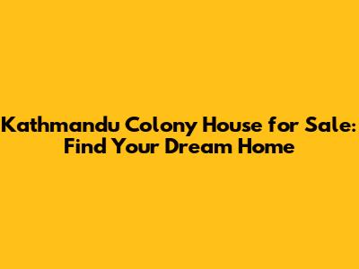 Kathmandu Colony House For Sale: Find Your Dream Home