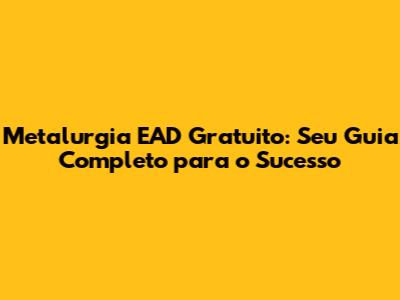 Metalurgia EAD Gratuito: Seu Guia Completo Para O Sucesso