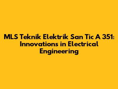 MLS Teknik Elektrik San Tic A 351: Innovations In Electrical Engineering