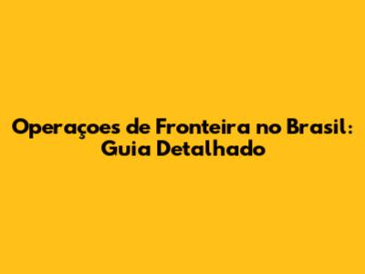 Operaçoes De Fronteira No Brasil: Guia Detalhado