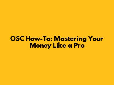 OSC How-To: Mastering Your Money Like A Pro