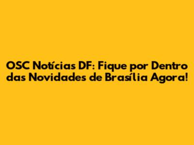 OSC Notícias DF: Últimas Novidades De Brasília Agora!