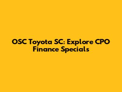 Hey guys, if you're in the market for a Certified Pre-Owned (CPO) vehicle and are looking for some sweet finance deals, then you've landed in the right spot! Today, we're diving deep into OSC Toyota SC's CPO finance specials, breaking down everything you need to know to snag a great deal on a reliable, pre-loved Toyota. Buying a CPO vehicle is a smart move, offering a blend of affordability, peace of mind, and the quality you expect from Toyota. Plus, with the right financing, you can drive off in your dream car without breaking the bank. So, let's explore what makes OSC Toyota SC's CPO finance specials so attractive and how you can take advantage of these offers.