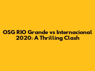 Hey guys! Let's dive deep into the electrifying showdown between OSG RIO Grande and Internacional back in 2020. This match was more than just a game; it was a rollercoaster of emotions, a display of raw talent, and a testament to the unpredictable nature of football. We'll explore the key moments, the strategies employed, and the impact this game had on both teams. Buckle up, because we're about to relive a classic!