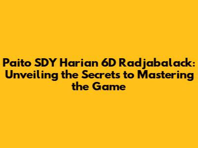 Radjabalack: Your Go-To Source for Paito SDY Harian 6D