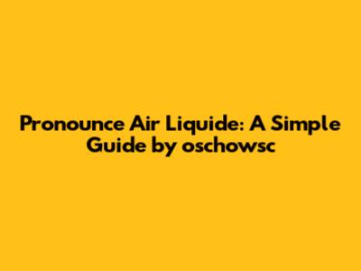 Pronounce Air Liquide: A Simple Guide By Oschowsc