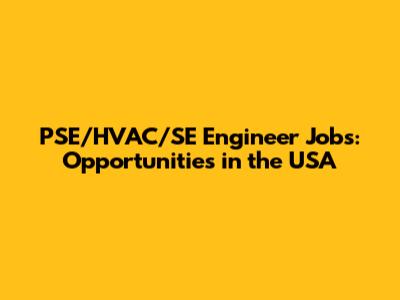 PSE/HVAC/SE Engineer Jobs: Opportunities In The USA
