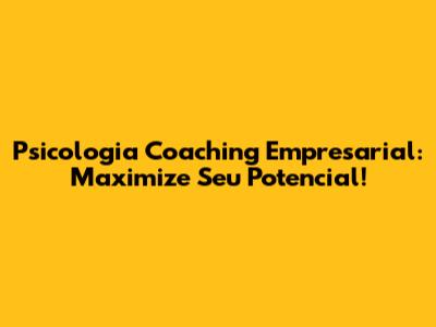 Psicologia Coaching Empresarial: Maximize Seu Potencial!