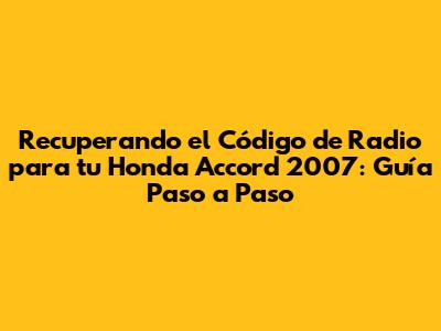 Dónde Encontrar el Código de Radio de tu Honda Accord 2007