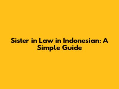 Sister In Law In Indonesian: A Simple Guide