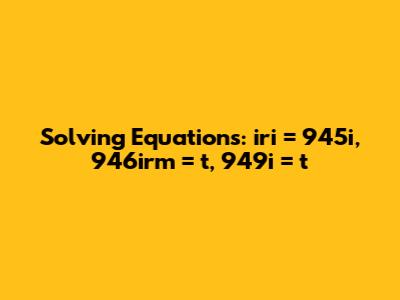 Now, let's tackle the second equation: 946irm = t. Here, we already know from the first equation that r = 945. We can substitute this value into the second equation to simplify it. Replacing 'r' with 945, we get: