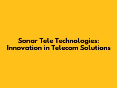 Sonar Tele Technologies: Innovation In Telecom Solutions