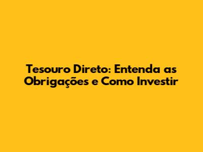 Tesouro Direto: Entenda As Obrigações E Como Investir