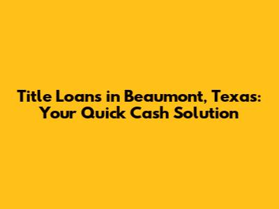 Hey guys! If you're searching for title loans in Beaumont, Texas, you've come to the right place. Sometimes, life throws unexpected financial curveballs, and you need a quick solution. That's where title loans come in. Let's dive into everything you need to know about getting a title loan in Beaumont, Texas, so you can make an informed decision and get back on your feet.