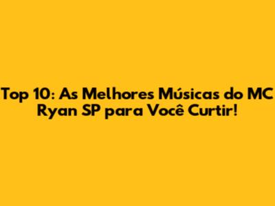 Top 10: As Melhores Músicas Do MC Ryan SP Para Você Curtir!